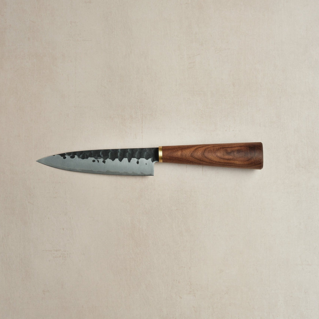 Our bar knife is handmade for us by Katto using Japanese (AUS-10) steel and responsibly sourced American Black Walnut. The 6.5" blade makes it perfect for intricate tasks including herbs and citrus.