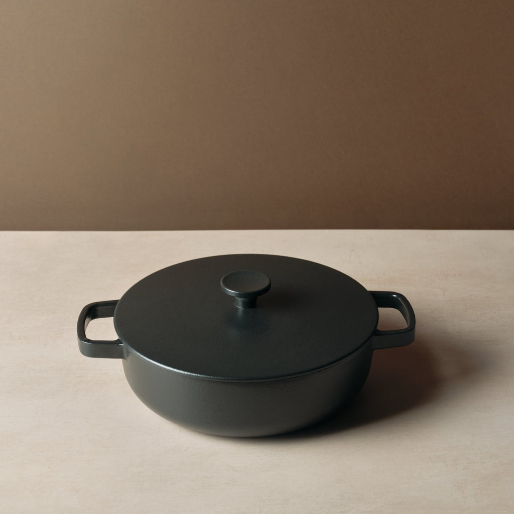 These beautiful pans are the only three you'll ever need - a skillet, sauté pan and stockpot. Each one is enamelled twice rendering them effectively bomb proof.